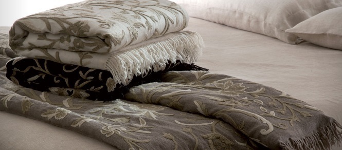 Плед SALENTO - Cantori (Италия). Тонкая черная шерсть с рельефной вышивкой на подкладке из хлопка, размер 100*200 см.
