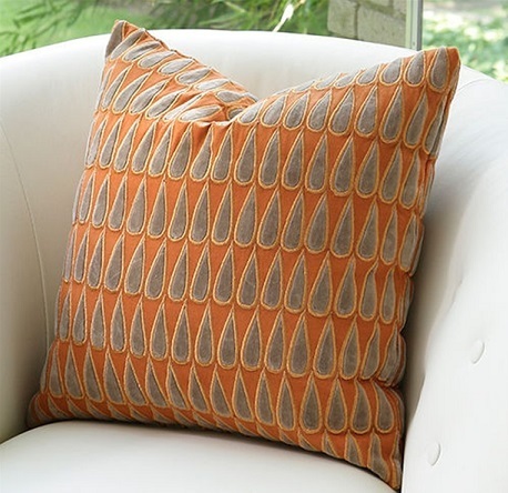 Декоративная подушка "Медные капли дождя" из коллекции Global Views. Чехол из 100% украшен аппликацией из бархата медного цвета, наполнитель полиэстер, размер 51*51 см