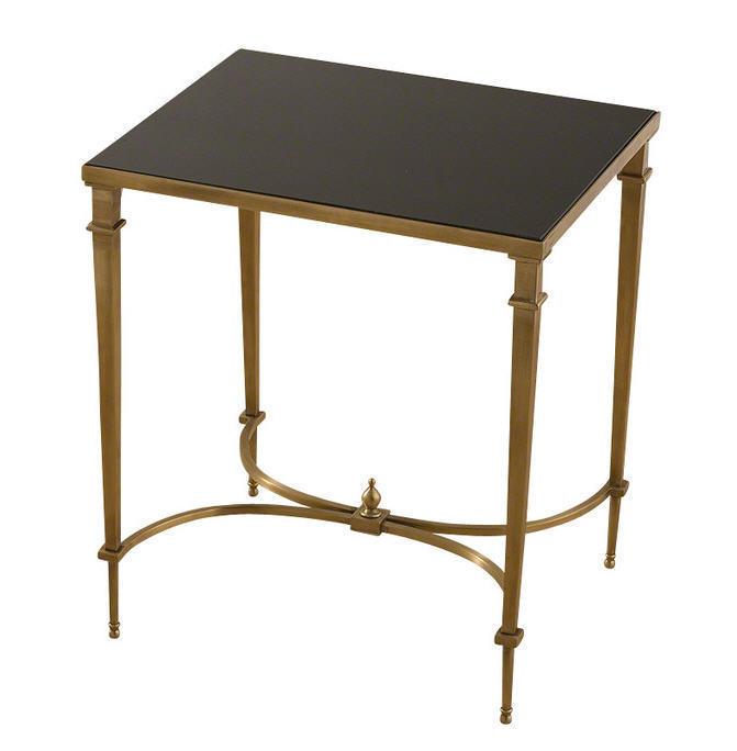 Прямоугольный акцентный столик с французскими квадратными ножками из коллекции Global Views, подстолье - латунь , топ- черный гранит, Размеры d 42*61 см.