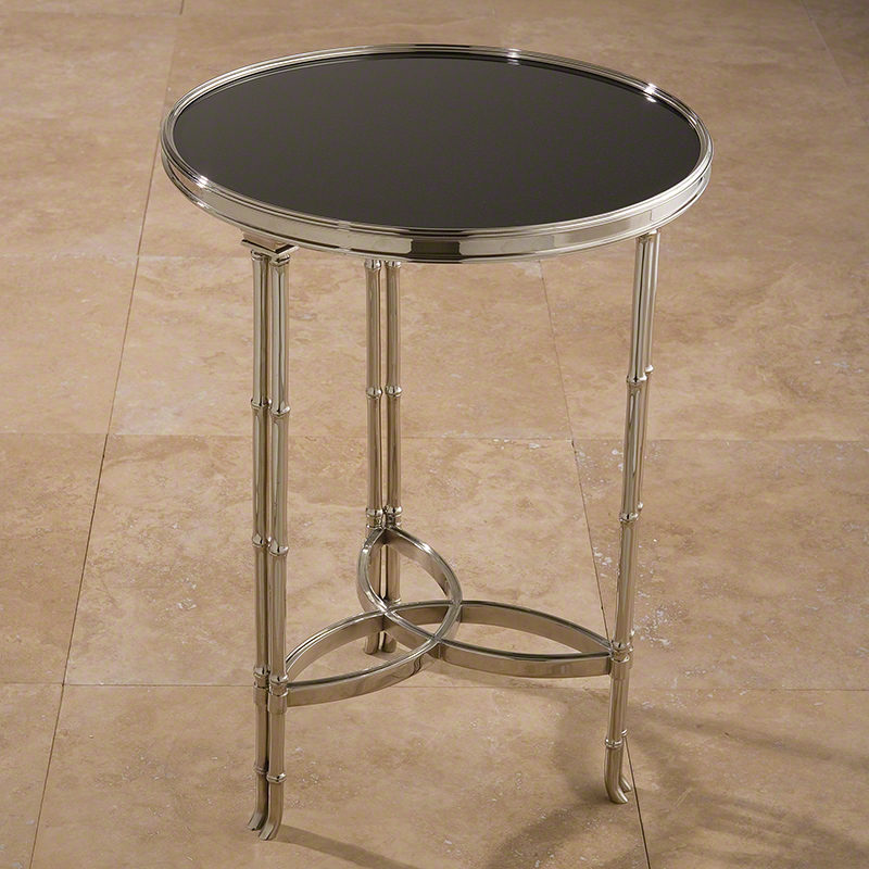 Акцентный столик Double Bamboo Leg из коллекции Global Views. Размеры 52*h70 см. Никелированный металл, топ черный гранит.