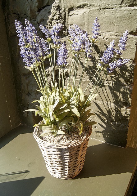 Куст Лаванды в плетеном кашпо, композиция высотой 57см.