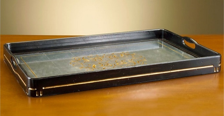 Поднос из коллекции John Richard. Размер 8*71*46 см. Поднос выполнен из темного дерева с золотым декором, дно подноса выполнено в технике эгломизе и украшено золотой росписью.