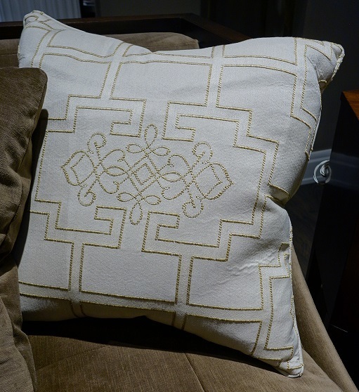 Декоративная подушка от Lillian August, наполнитель гусиное перо, размер 56*56см. Чехол из плотного хлопка, украшенного золотым шитьем.