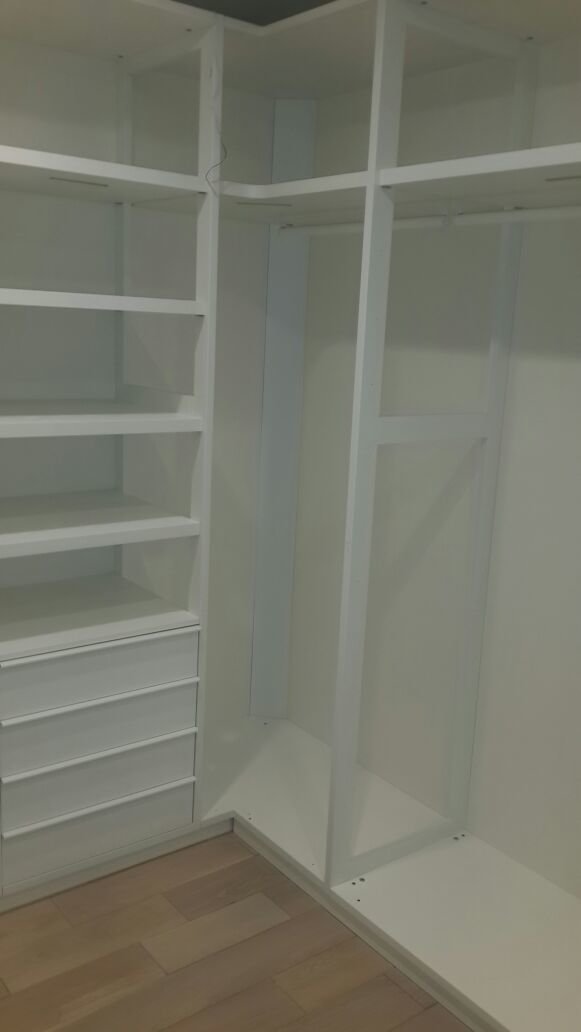 Отличительной чертой данной композиции является то, что при монтаже данной мебели нет необходимости крепления к стене! Мебель устанавливается просто на пол и держится за счет легких перегородок. Так же обращаю Ваше внимание на то, что модули данной композиции взаимозаменяемые и могут быть установлены практически в любом помещении.К данной гардеробной можно дозаказать любые необходимые элементы и аксессуары.