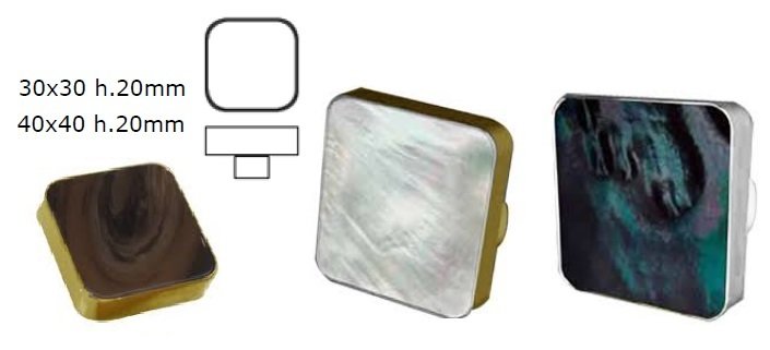 Мебельная ручка на латунном основании с вставкой из натурального перламутра или рога. Возможные варианты отделок: White MOP/Chrome, White MOP/Gold, Smoke MOP/Chrome, Smoke MOP/Gold, Horn/Chrome, Horn/Gold.