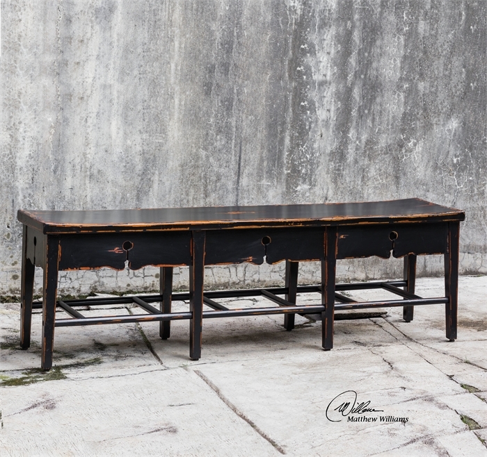 лавка Dalit в паназиатском стиле - Matthew Williams для Uttermost, размеры: 157 W X 48 H X 36 D cm, дерево античный черный лак