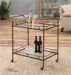 Сервировочный столик Stasia от Uttermost в отделке состаренная медь, полки стекло (design Matthew Williams) Размеры 86*h83*53 cm.